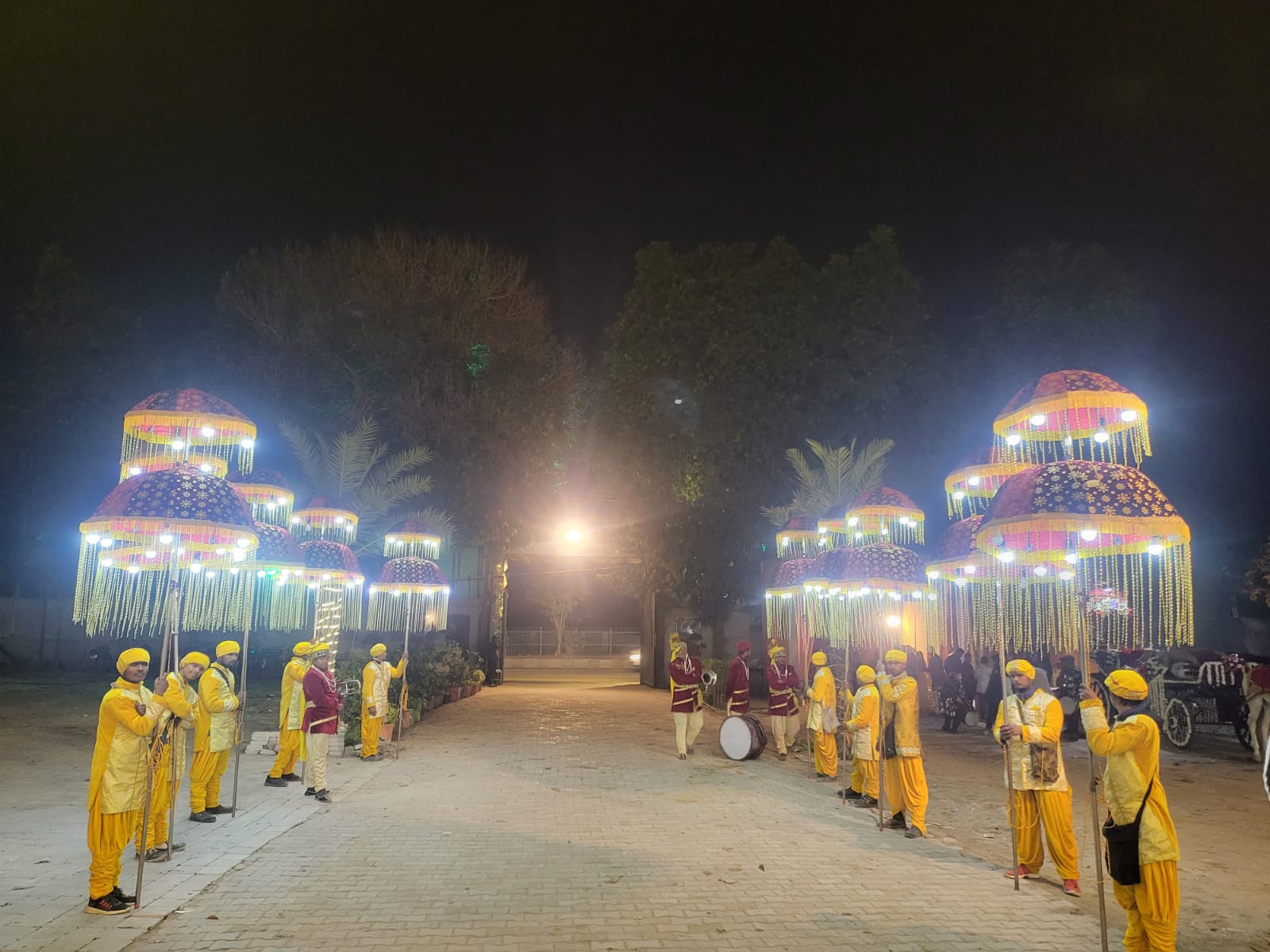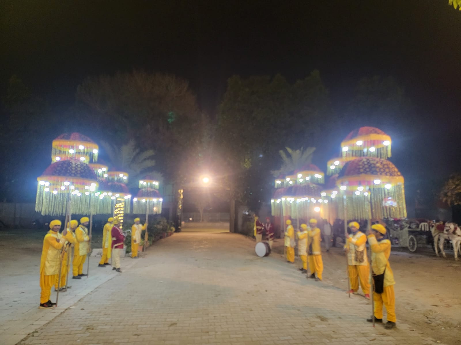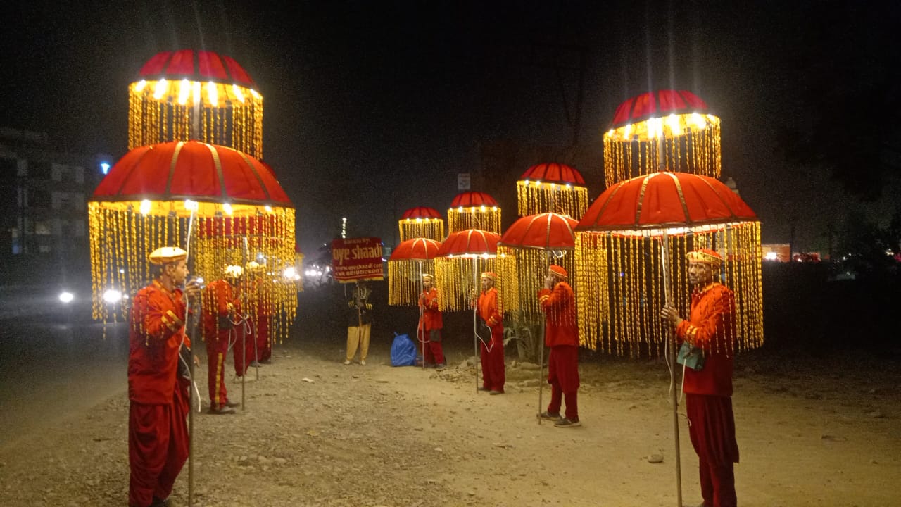 For any function during the evening and the night time, Lights add that charisma to a wedding procession which attracts all the attention at once. Your Baraat needs to stand out and shine. As you walk with the Baraat, usually after sunset, what attracts attention and adds that ambience of a wedding processions are the lights. Naveen Bands offers custom lighting solutions for your Baraat.